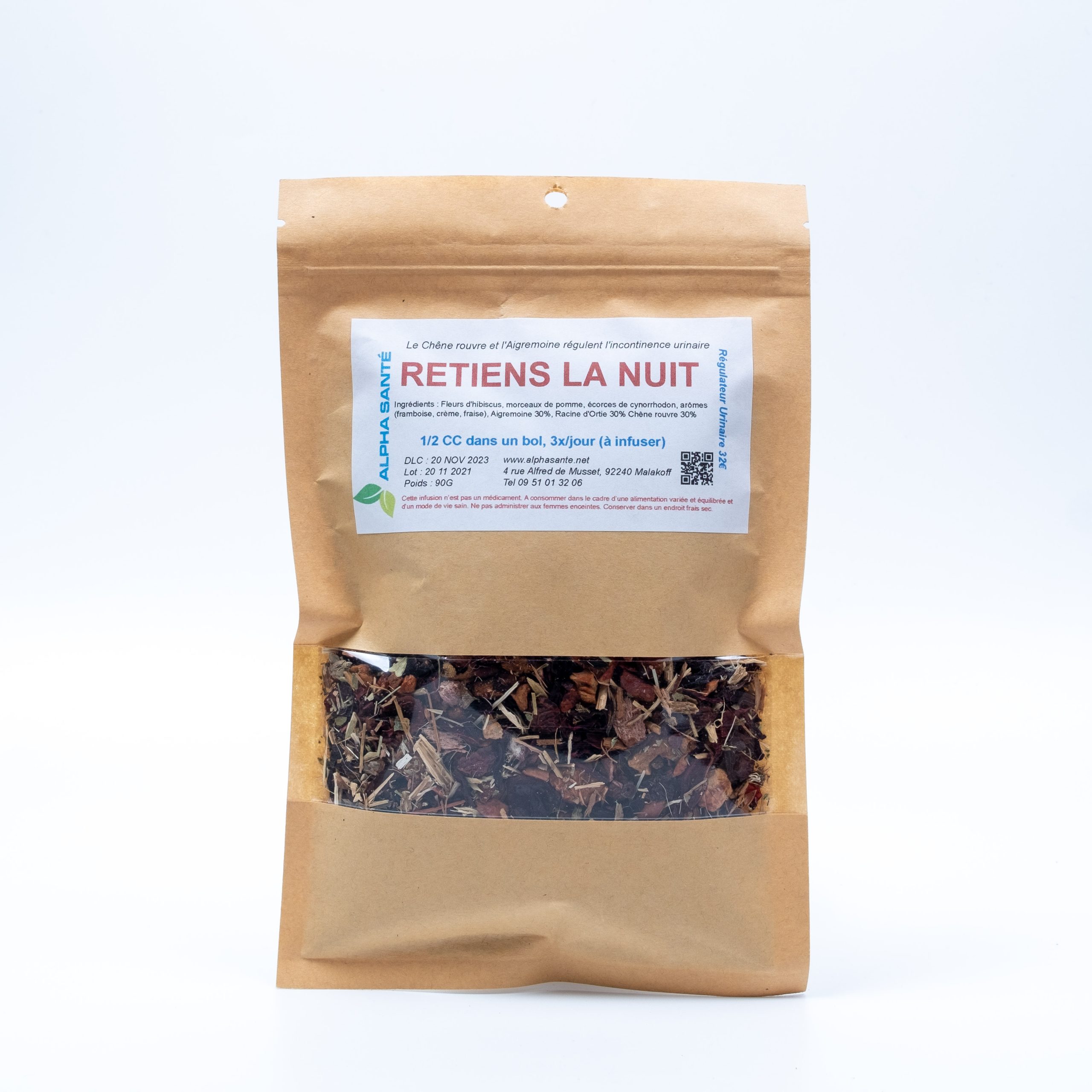 Conseils d’utilisation : Faire infuser 1 cuillère à café dans un bol, 3 fois par jour.